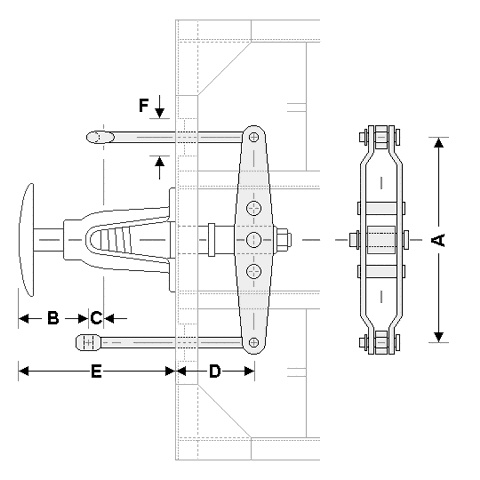 In der Praxis ist eine nur leicht vorgespannte Kupplung von Bügelmitte bis zur Mitte des Lagerauges der Öse 7 rund 27mm lang (2 × B + C). Der Abstand von der Spindelmitte bis zum Vierkantrohr der Öse beträgt rund 15mm und zum Vierkantrohr des Hakens ca. 19,5mm (Differenz 6mm). Bei einer angezogenen Kupplung (eingedrehte Spindelmuttern) sind es ca. 12,5mm für die Öse und etwa 17 für den Haken.