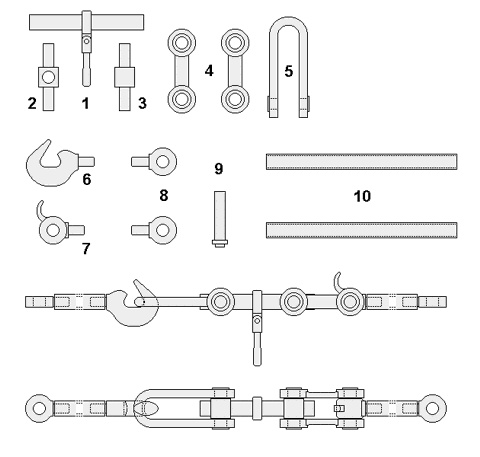 Achtung: Die Zugstange für den Haken 6 muss kürzer sein als die für die Öse 7. Die Differenz C beträgt rund 2mm. Das liegt daran, dass die Nutzlänge des Bügels 5 größer ist als die der Hängelaschen 4. Die Differenz der Zugstangen ist wegen der unterschiedlichen Länge von Haken und Öse noch viel größer.